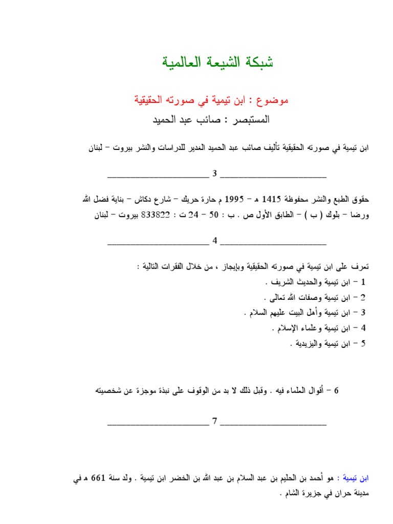 ابن تيمية في صورته الحقيقية صائب عبد الحميد Free Download Borrow And Streaming Internet Archive