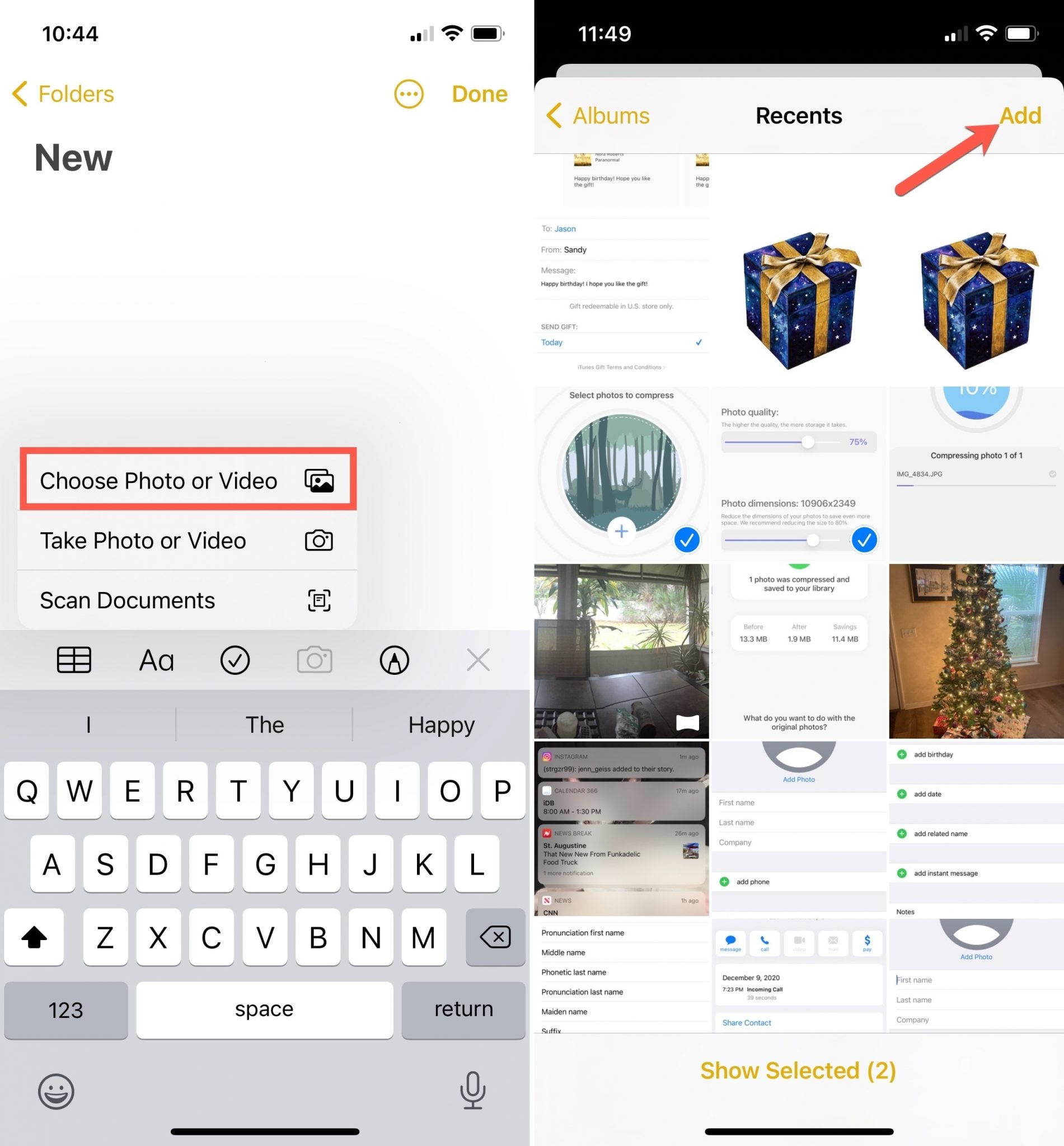 كيفية اضافة صورة أو مقطع فيديو لتطبيق Notes على Ios